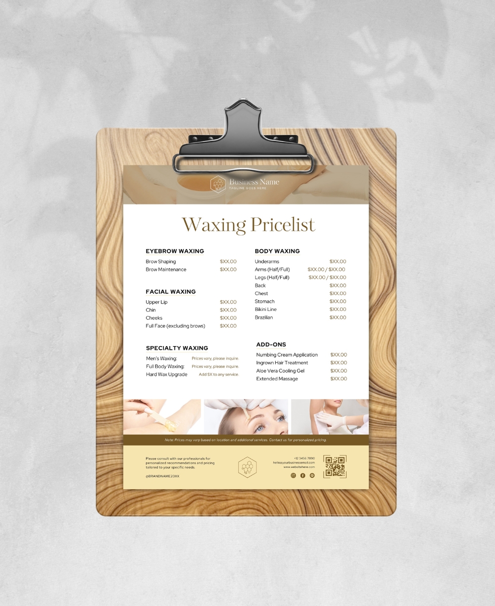 Price List Template For Waxing